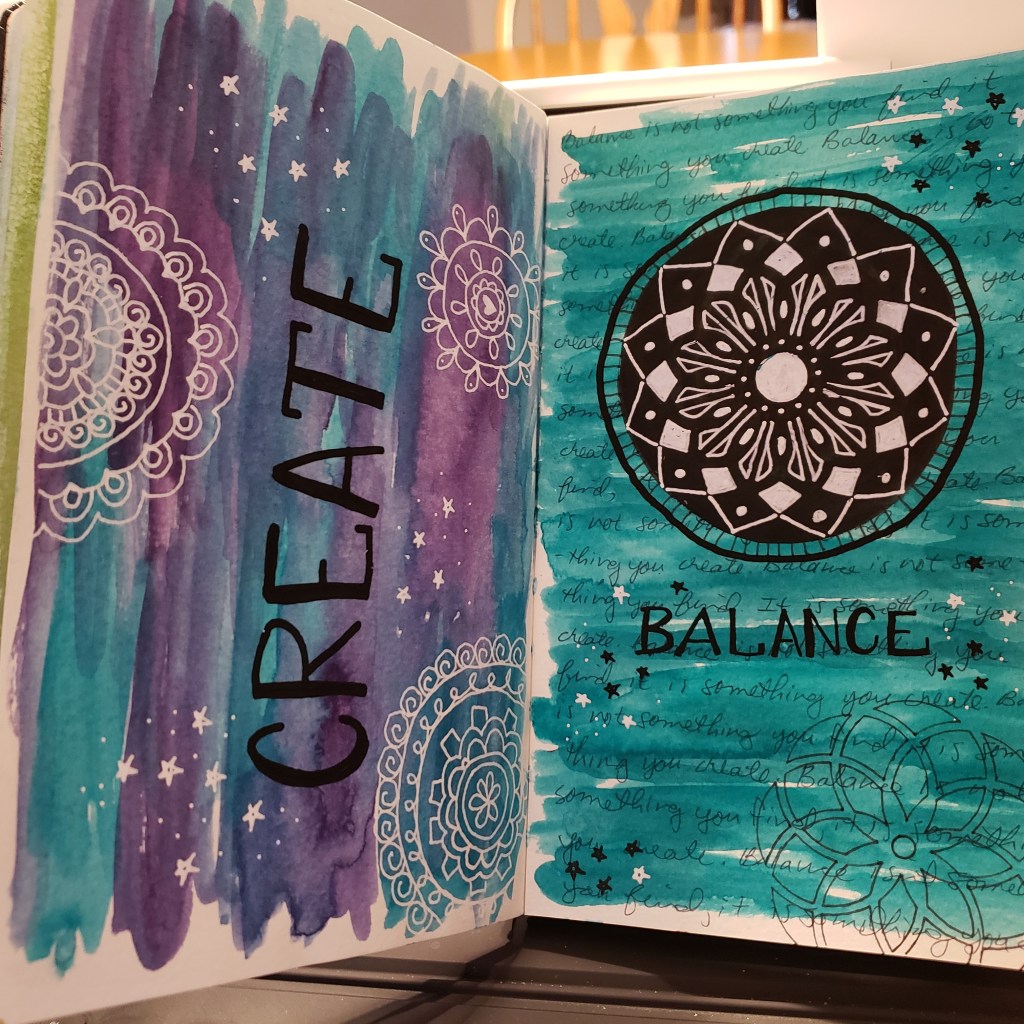 Art therapy can be just about anything and everything. I’m a mixed media artist and my husband and daughter would tell you that I collect art supplies and have an addiction of sorts to my collection. Lol. I can’t deny it, its true. I have joined several art learning boards that have tutorials and I am continuing to learn more and more ideas for 1 and 2 page art journaling spreads.